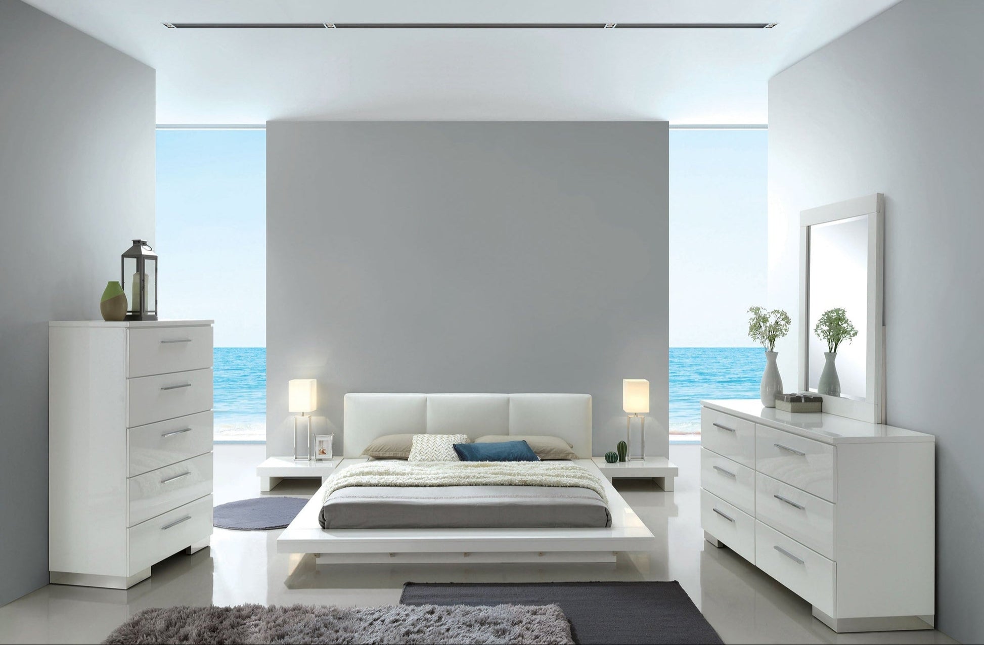Redefine contemporary elegance with the Christie Bedroom Set, perfect for those who love sleek, minimalist design. Its low-profile platform bed exudes a floating effect, while matching nightstands, a high-gloss dresser, and a stylish mirror create a seamless, balanced aesthetic for your modern bedroom.