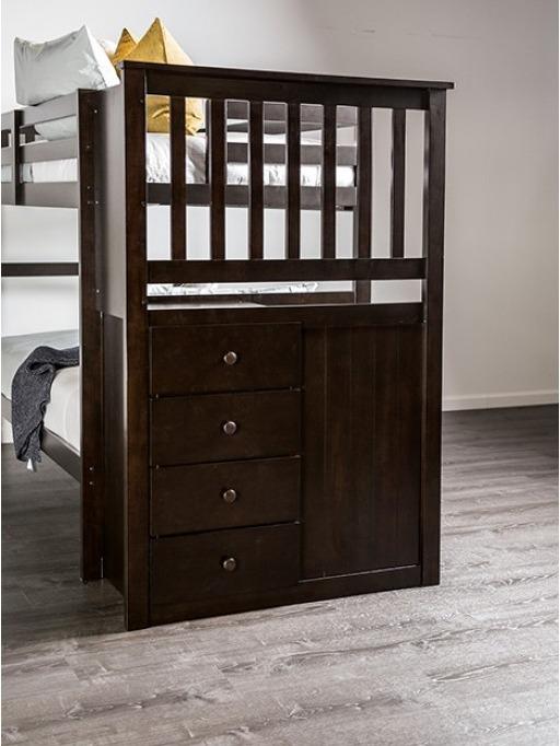 Ontario Space-Saving Twin Over Twin Bunk Bed with Built-In Storage Stairs – Espresso Finish