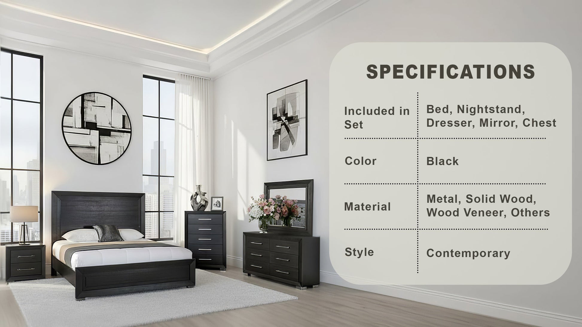 Bramley Contemporary Bedroom Set, 5 Pieces