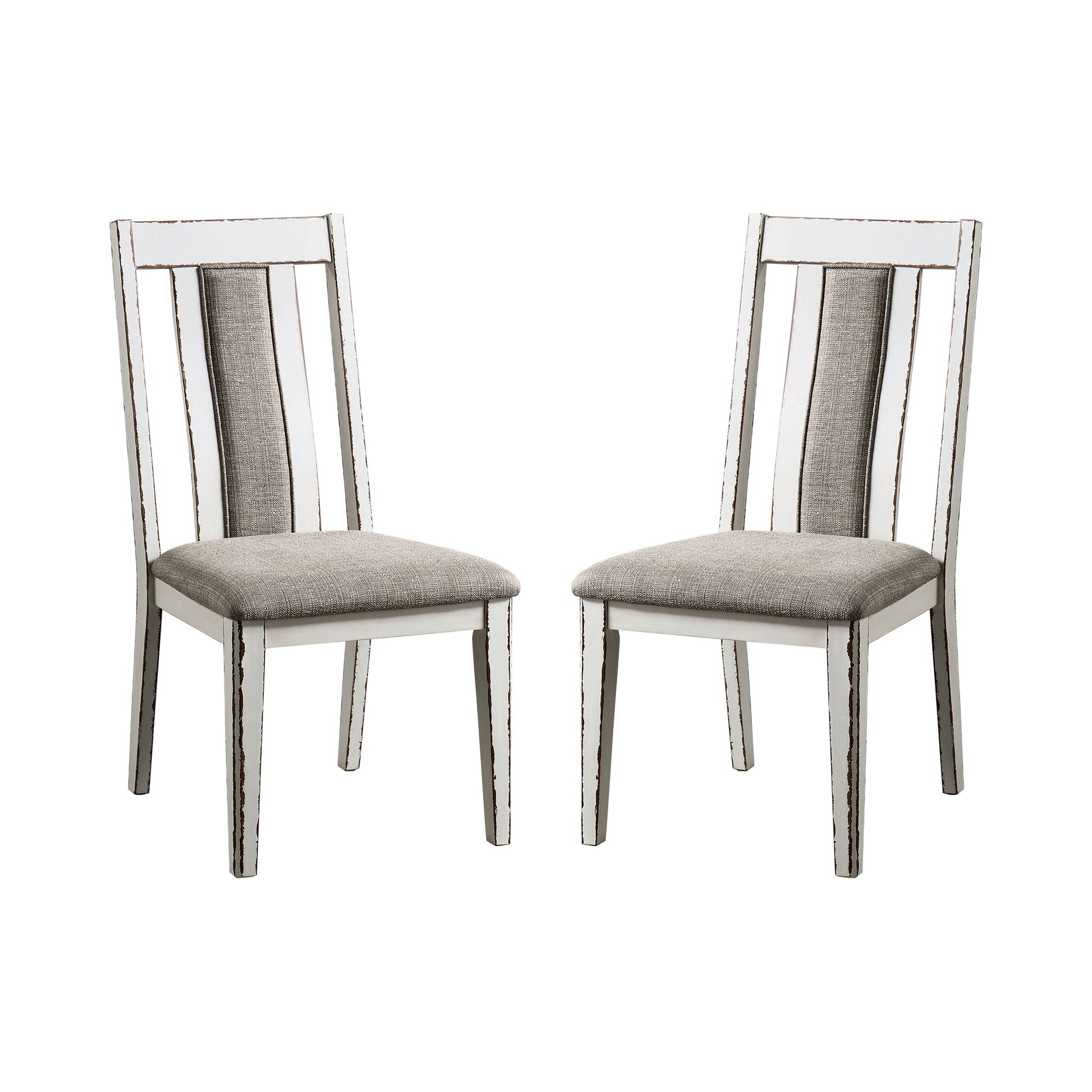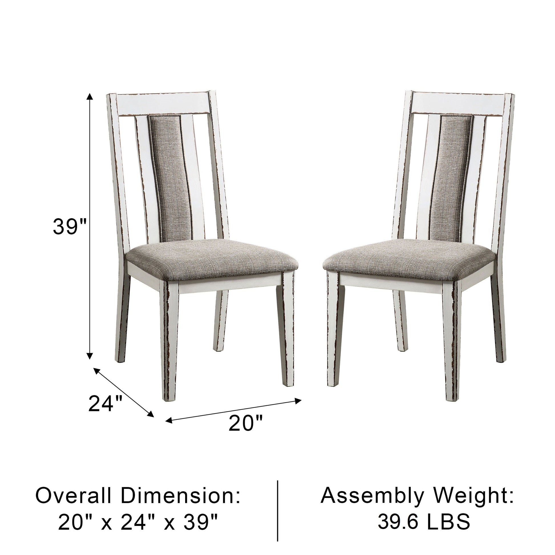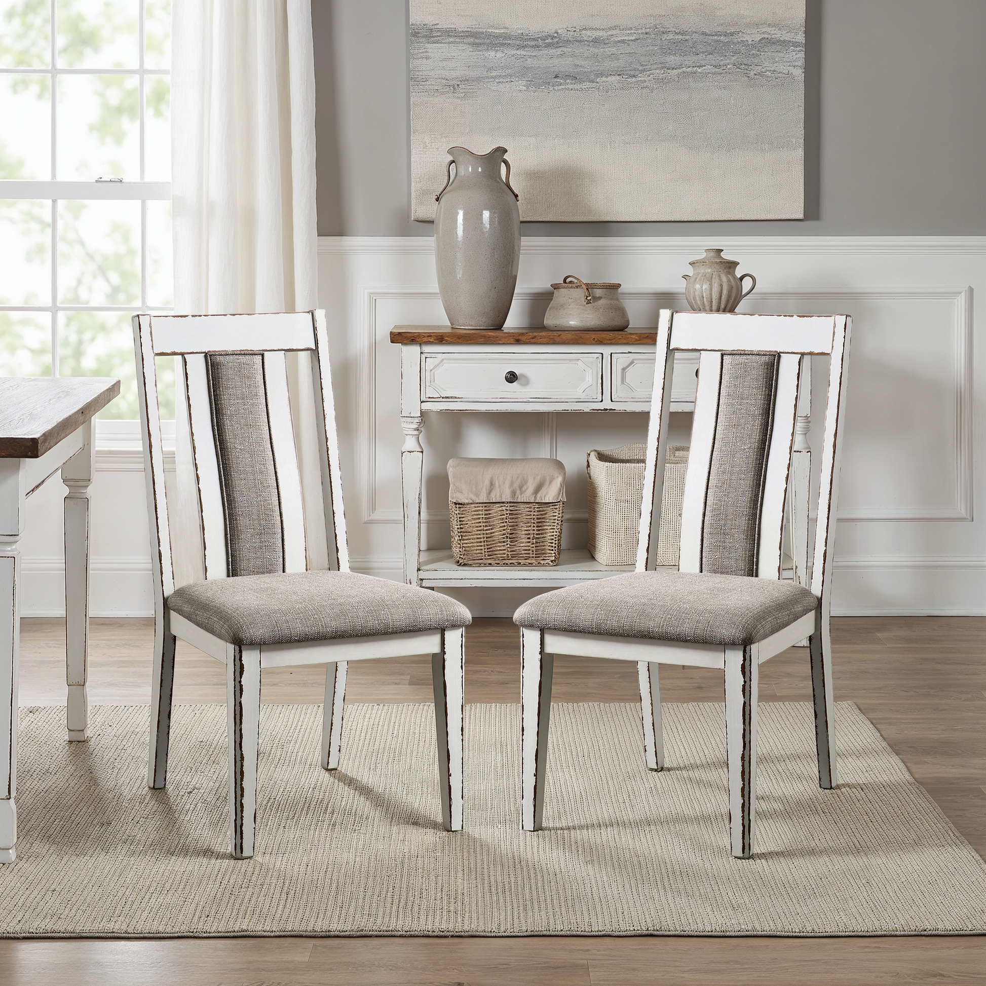 Elevate your dining experience with this rustic side chair, designed to complement cozy, lived-in interiors. Featuring a charming two-tone finish in weathered white and warm gray, it effortlessly blends classic farmhouse vibes with modern flair. The contoured back and plush upholstered seat provide both style and comfort, making it ideal for everyday use or entertaining guests. With weathered detailing and sturdy wood construction, this chair brings character and warmth to any dining space.
