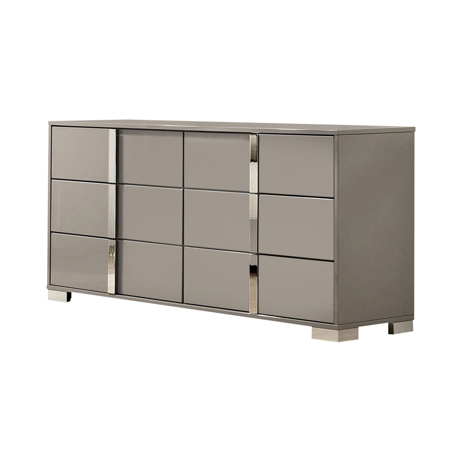 Refined and modern, this dresser brings a soft sophistication to your bedroom. The UV-coated finish enhances durability while offering a smooth, high-gloss sheen. Chrome legs and vertical handles add contemporary flair, completing a design that’s both stylish and practical for everyday living.