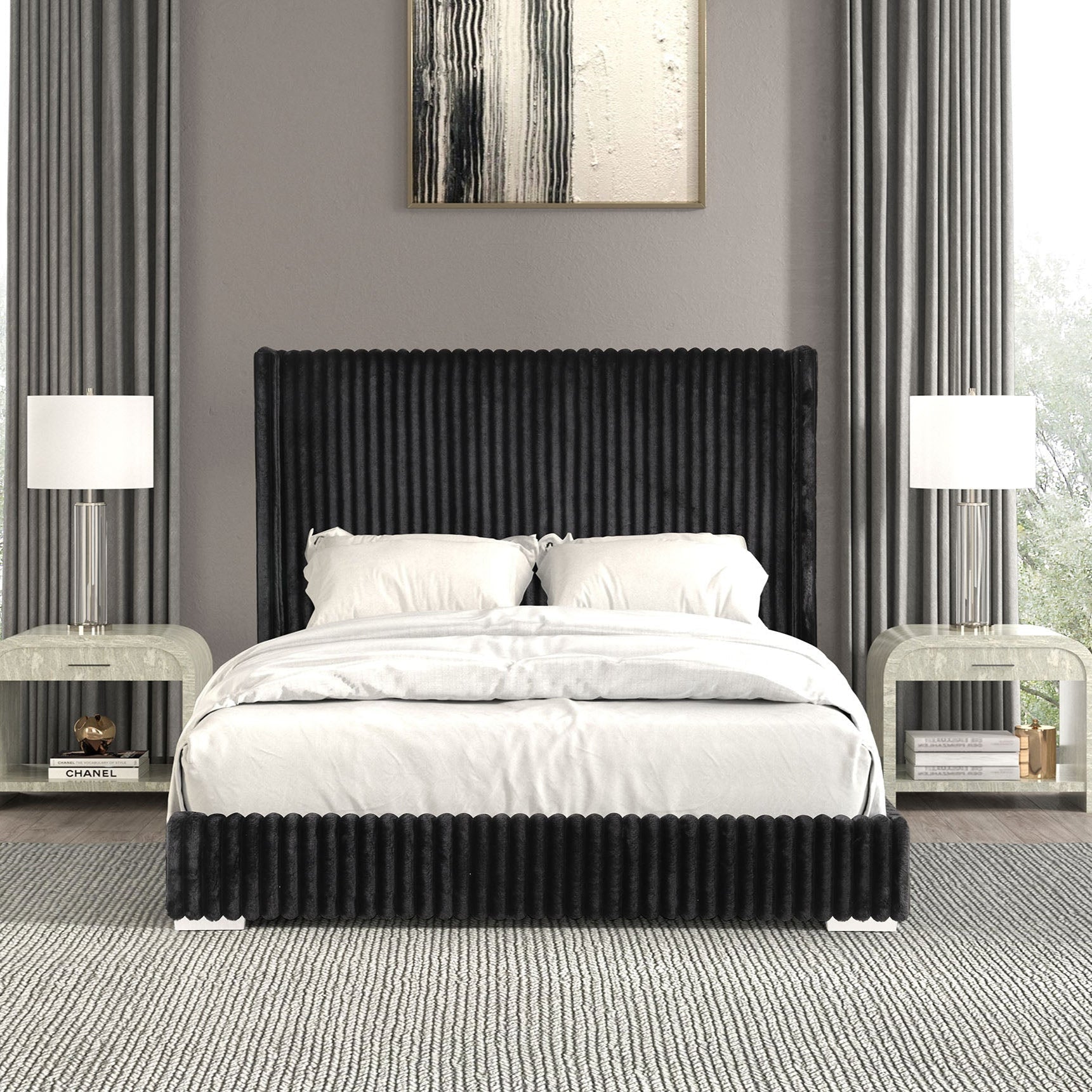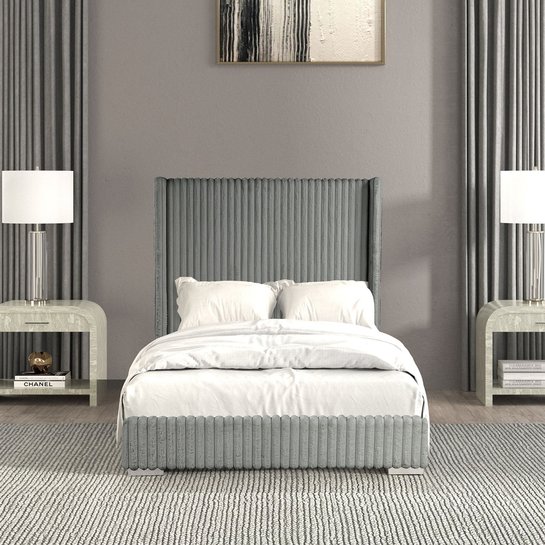 Santorini Modern Contemporary Fur Chenille Fabric Minimalist Platform Bed